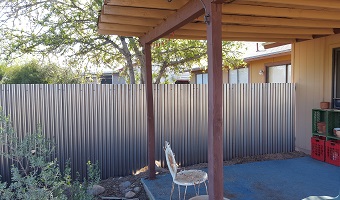 The only thing I know right now is that I'd like to have steel-framed corrugated metal fencing installed on the east and west sides of the house. On the east, I only have 20 feet of fencing. On the west, the length of the fence is around 70 feet, including the return to the house. There will have to be a gate installed in that return section. I'm hoping that I can share the cost of both the east and west fences fifty-fifty with the respective neighbors. Of course, they're going to have to agree to the corrugated fencing. I just think it's prettier than concrete block, just as easy to maintain, and much cheaper.