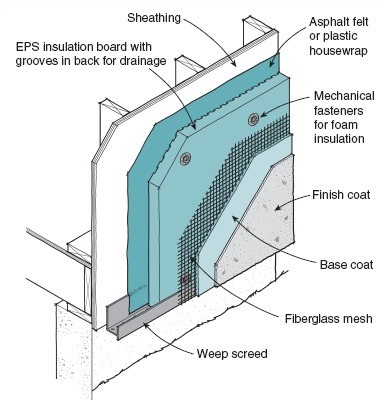 The only issue or problem I can see is that the bottom few inches of the siding to the west of the patio is a bit spongy. That might have to be removed, but that's about it. I think that can be cut out and won't otherwise affect the installation of the stucco.