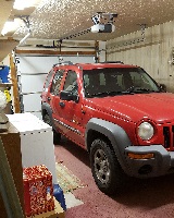 Always Open and Shut arrived about 10:00 AM. It took the guy about four hours to get the door and opener installed. While the guy was doing that, I ran out to Lowe's to pick up some additional trim that he suggested. The door itself was only about a ¼-inch wider than the doorway. I picked up some PVC trim in white, along with some screws. I got back home, cut the pieces, and put them up while the door was being installed. Perfect. The trim narrowed the doorway by just over an inch, so the door will have no opportunity to get jammed in the doorway.