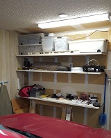 Once everything was done and Always Open and Shut had departed, I installed the old bi-fold closet doors as shelves around the garage. Three in front to form a sort of workbench, and a total of six along the east wall to replace the old particle board shelves and add some new ones. Very nice! I still have a few doors left, but I'll trash those when I'm able.